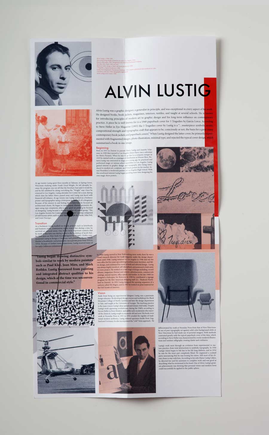 In the beginning of the semester we randomly picked (lottery style) a Cold War Era designer; I had the privilege and pleasure of researching and creating an identity system representing Alvin Lustig.