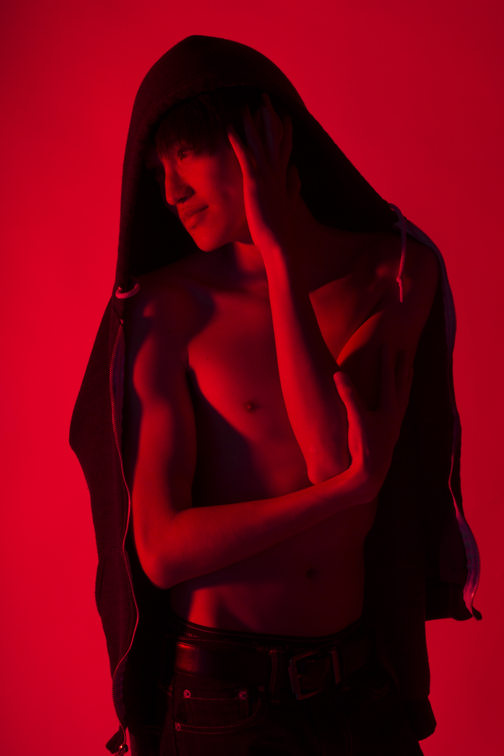 Color gel experimentation with lovely and fun male model. I wanted to accentuate the model's light and graceful body structure through vivid and flat color.